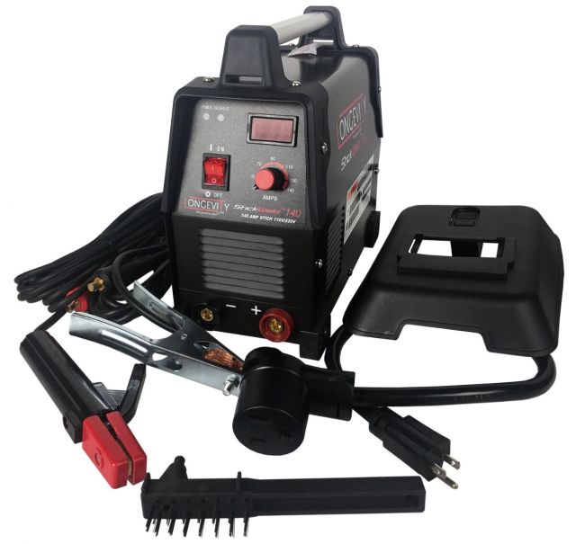 The Longevity STICKWELD 140 is an excellent portable, yet powerful stick welder that is capable of welding on both 110v and 220v welding current. This featherweight stick welder weighs in at 23 lbs and ranges in amperage from 30-140 when connected to a 220v outlet.